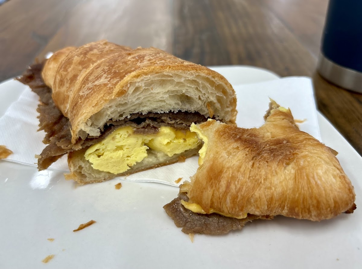 Sweet place. So glad I found it. Had the Bulgogi (Korean style marinated beef) with egg and cheese on a croissant and it was sooo good. Other people there were enjoying turkey sandwiches and kale smoothies. I’ll be back to try their chicken salad. Outside looks very plain but inside is comfortable, neat and has a good atmosphere with nice employees.